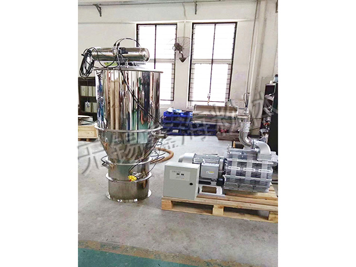 真空上料機由真空泵(無油、無水)或者羅茨風機、不銹鋼吸料嘴、輸送軟管、PE過濾器(或316L不銹鋼過濾器)、壓縮空氣反吹裝置、氣動放料門裝置、真空料斗和料位自動控制裝置等組成,整套系統設計合理、制造精良。